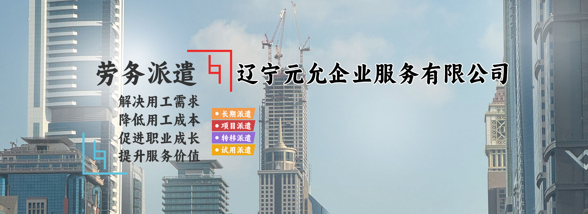 遼寧元允企業(yè)服務(wù)有限公司為客戶提供人力資源整體服務(wù)方案的專業(yè)化服務(wù)機構(gòu):沈陽勞務(wù)派遣,沈陽薪酬外包,沈陽勞務(wù)外包,沈陽人事代理,沈陽財務(wù)外包,沈陽崗位外包,沈陽企業(yè)保險及工傷風(fēng)險外包等綜合服務(wù)